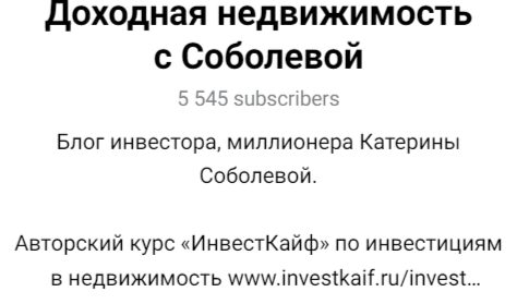 Соболева Катерина активно продвигает свои услуги в различных пабликах. Канал «ИнвестКайф» Soboleva_invest в Телеграмме собрал почти 6 тысяч подписчиков.