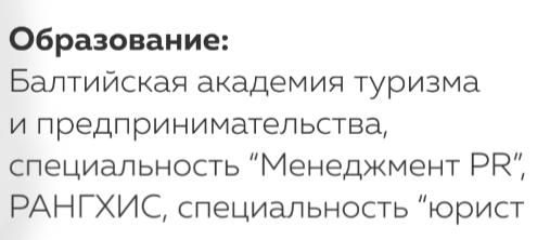 Соболева по специальности юрист и у нее два высших образования. На сайте также имеется информация о ее успехах в инвестициях, но статистические данные своих доходов она не демонстрирует.