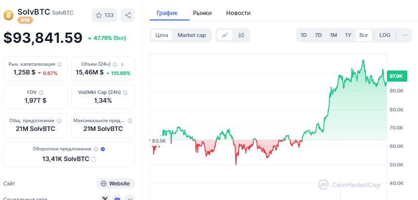 Стоимость токена SOLV может изменяться в зависимости от рыночных условий и развития проекта. Рекомендуется следить за актуальной информацией на биржах. На момент анализа в январе 2025 стоимость монеты выросла до $93,841.59. А это на 30% выше стартовой цены.
