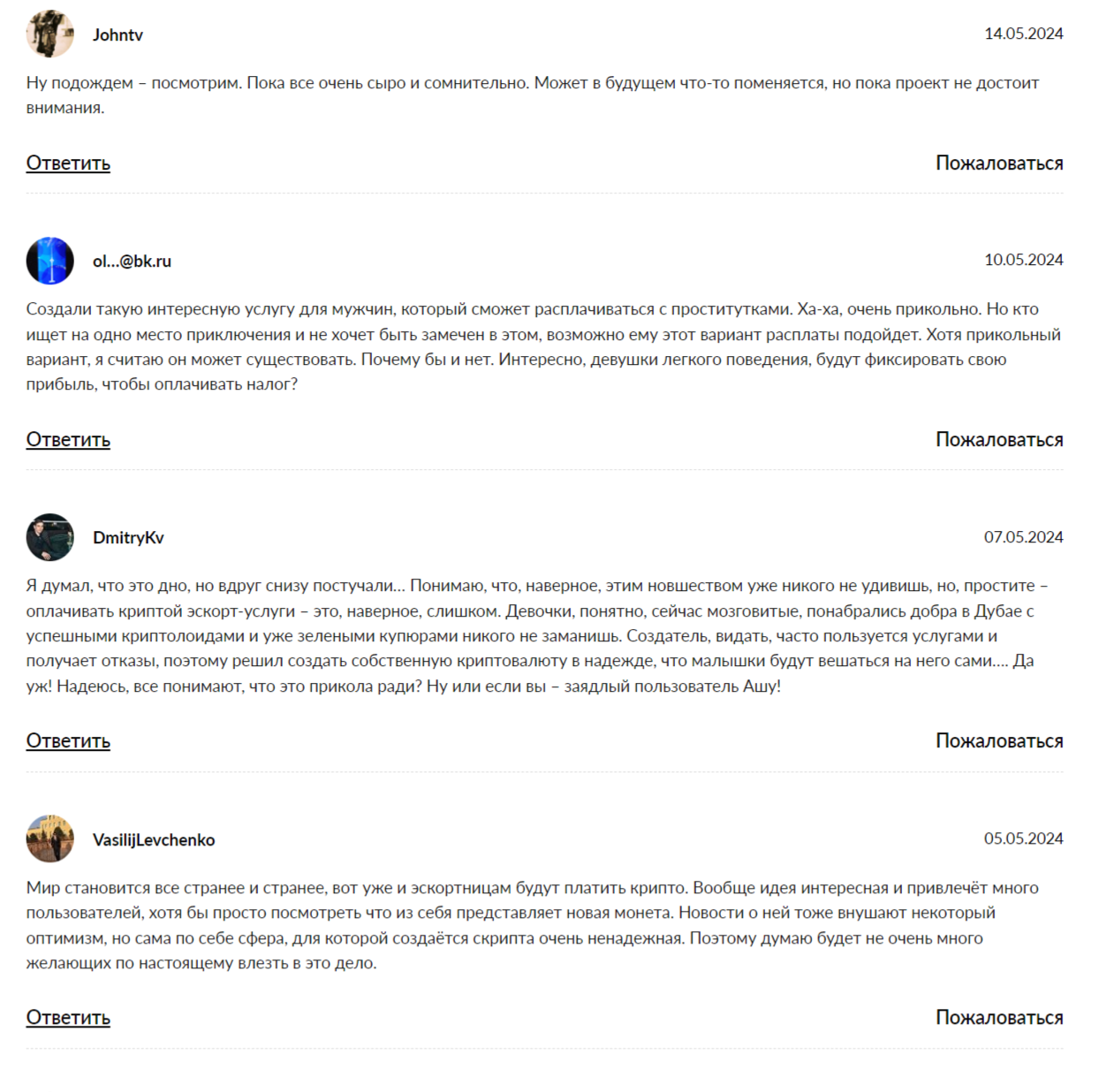 Изучение отзывов о Spintria показывает, что сообщество неоднозначно относится к новой криптовалюте и считают такое нововведение слишком странным. При этом этот факт не отметает реальный интерес со стороны мужчин.