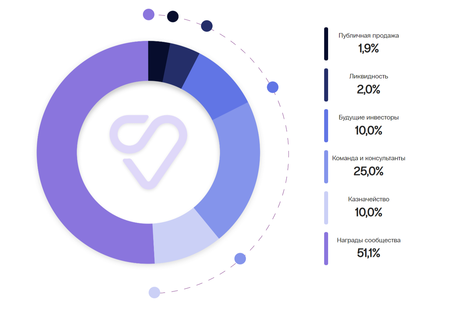 При изучении SP Coin стоит обратить внимание на токеномику. Все монеты Спинтриа будут распределены следующим образом: