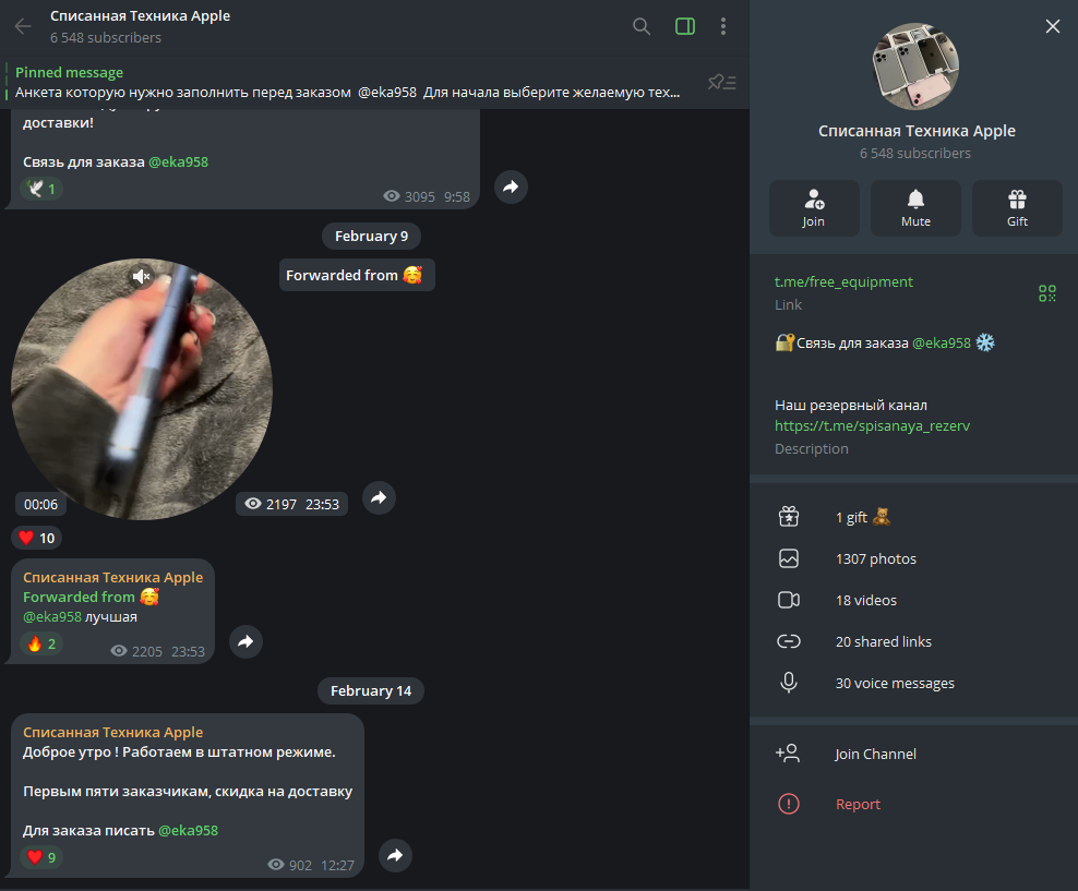 Тг-канал «Списанная Техника Apple»: отзывы и независимая оценка проекта Free Equipment от Eka958