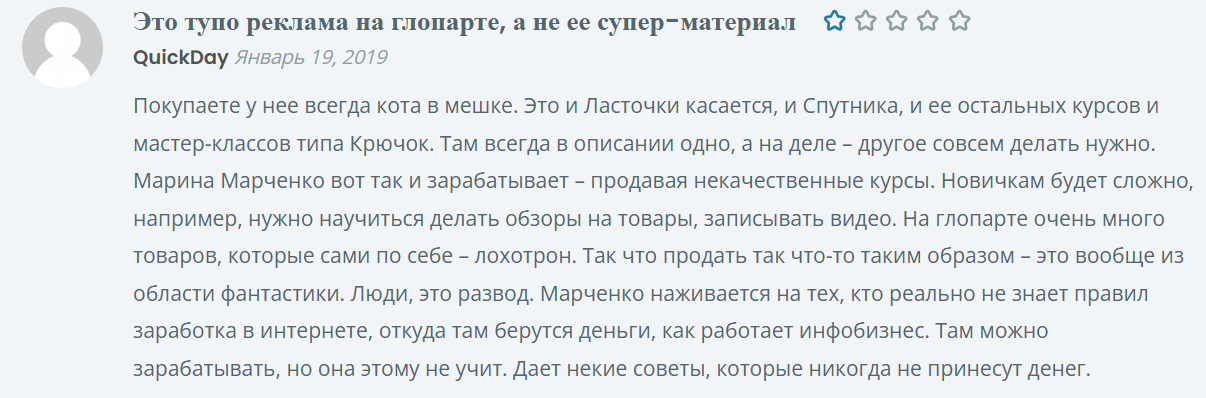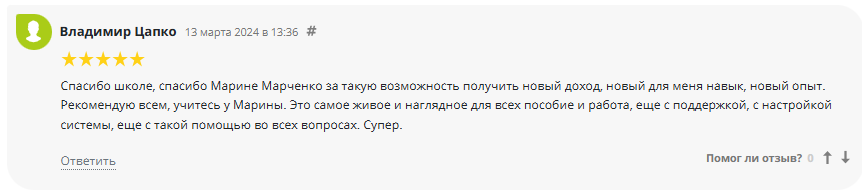 Отзывы о курсе «Спутник» в целом положительные. Участники подчеркивают, что курс выстроен чётко — без воды, с пошаговыми инструкциями и понятной логикой. Всё подаётся по схеме «сделай — получи», поэтому даже те, кто раньше не шарил в партнёрках, довольно быстро втягиваются. Некоторые ученики пишут, что спустя пару месяцев смогли выйти на стабильные выплаты в районе 150–200 тысяч рублей. Также можно наткнуться и на негативные отклики, в которых пользователи жалуются на обман со стороны Марины.