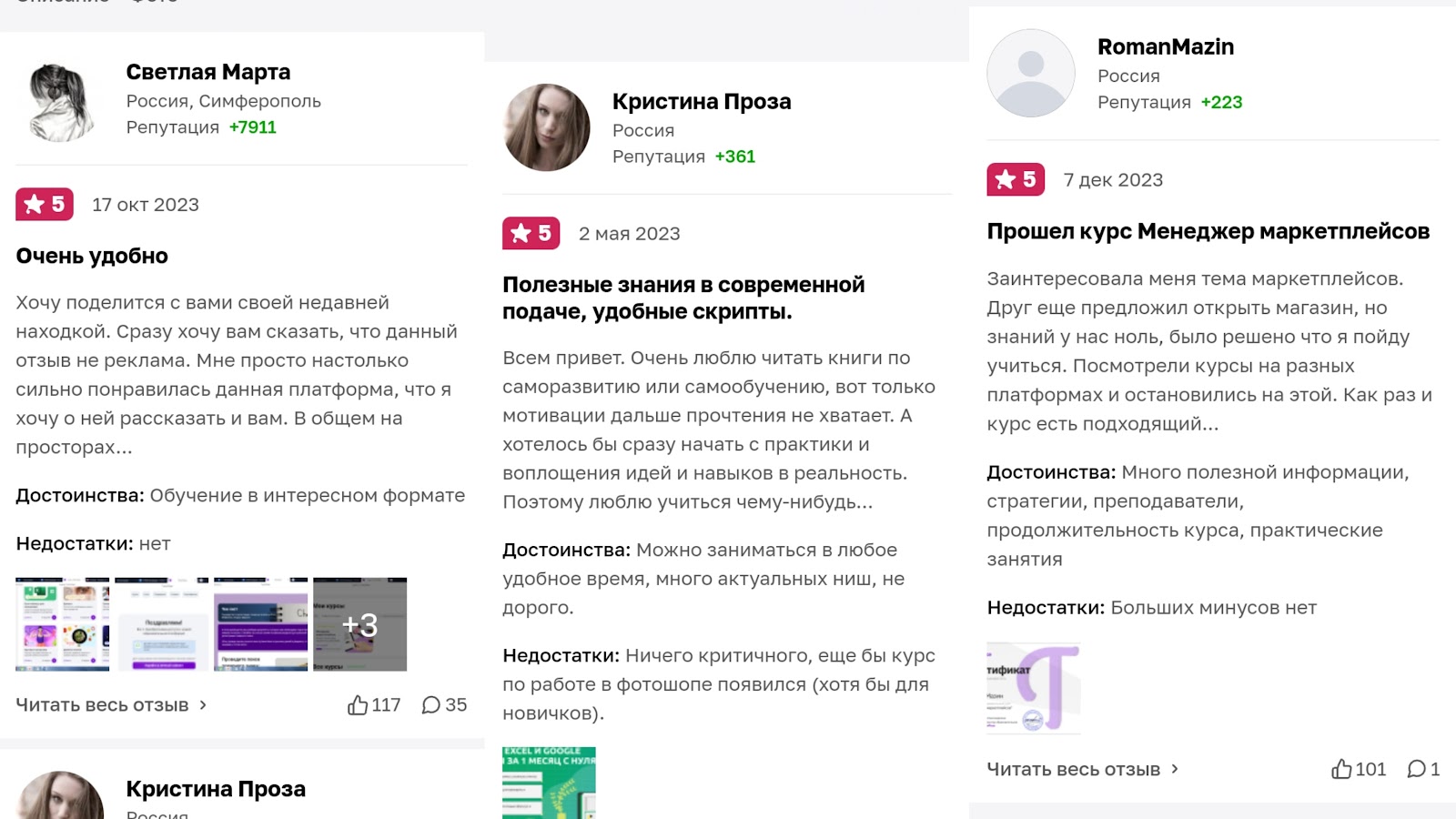 На тематических ресурсах есть положительные комментарии, и в них пишут о полезной информации и стратегиях в курсах.