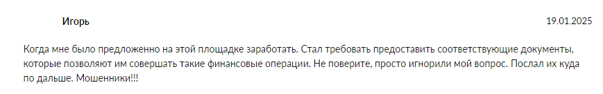 Большинство пользователей негативно отзывается о проекте. В отзывах пишут, что создатели платформы игнорируют запрос документов, дающих право на финансовую деятельность. Это, как считают пользователи, указывает на их недобросовестность.