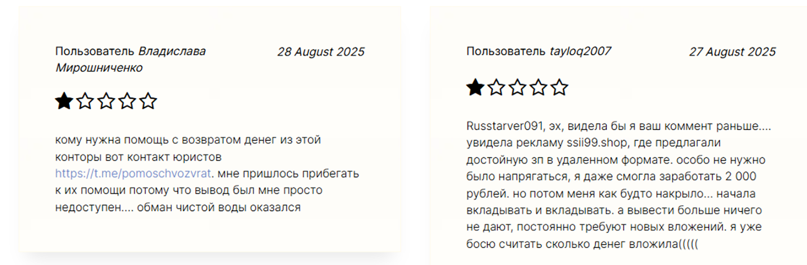 «Ссии99» – мошеннический проект, заработать на котором не получится. Компания не предоставляет документов, не подтверждает заявленное партнерство с крупными маркетплейсами, отзывы на проект негативные. Предложенная схема заработка нечестная.