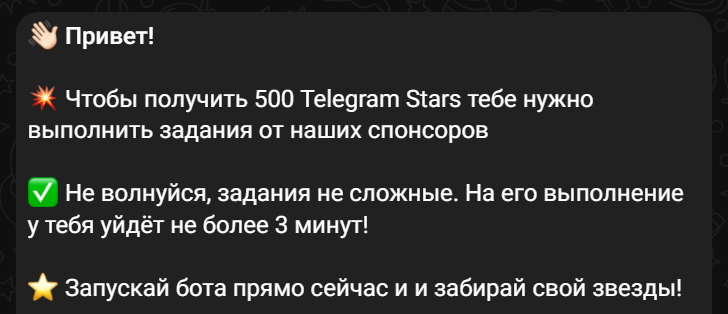 В качестве первого задания предлагают выполнить спонсорское и получить 500 звезд Telegram.