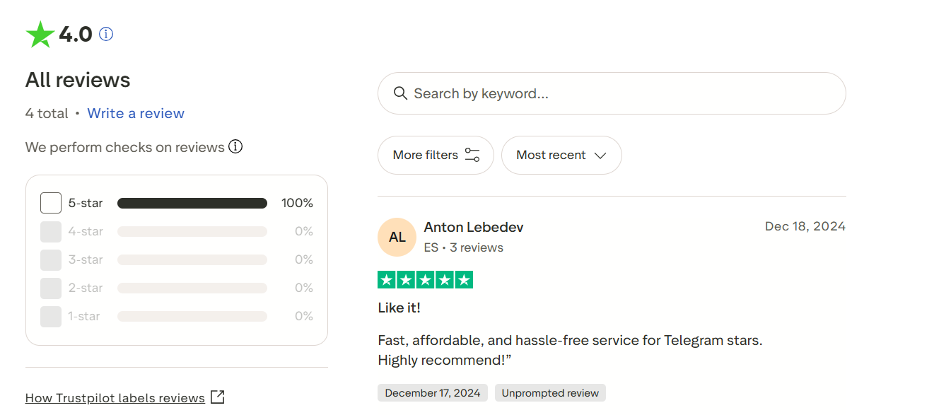 Несмотря на сотни тысяч пользователей в ботах, реальных отзывов в сети мало. На Trustpilot найден всего один отзыв за 2024 г., что странно для сервиса с такой заявленной аудиторией.