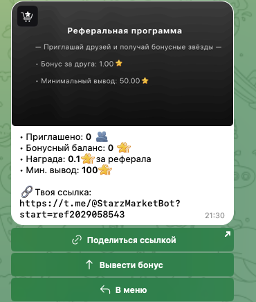 Основная информация о СтарзМаркетБот