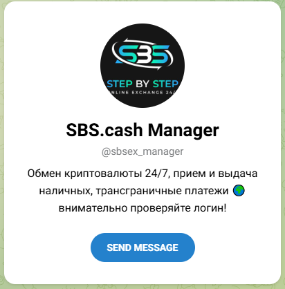 Связь с техподдержкой доступна через почту team@sbs cash или Telegram. Менеджера в TG можно найти по нику sbsex_manager.