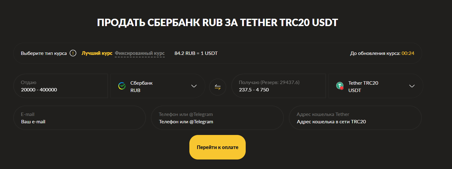 Step By Step поддерживает множество разных вариантов крипты. На платформе доступны: Bitcoin, Ethereum и Tether в разных сетях, а также Litecoin, Tron, Dogecoin и Toncoin. Всего здесь можно конвертировать более 500 различных криптовалют.
