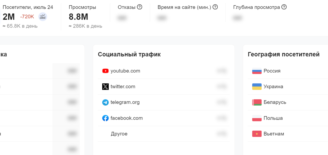 Делать выводы о популярности StonFi на TON можно и по посещаемости платформы. В среднем на сайт приходит около 65-70 тыс. человек в день. Наиболее активными являются пользователи из России, Украины, Беларуси, Польши и Вьетнама.