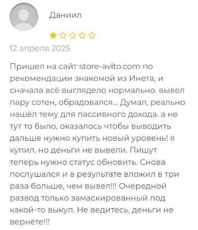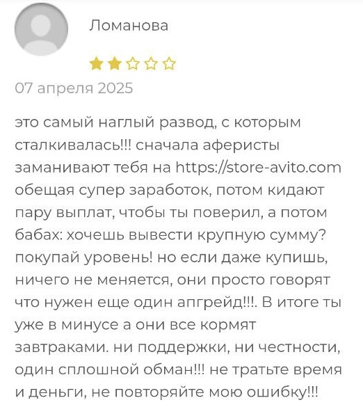 У store avito com отзывы нашлись на профильном сайте, посвященном раскрытию мошеннических схем заработка.