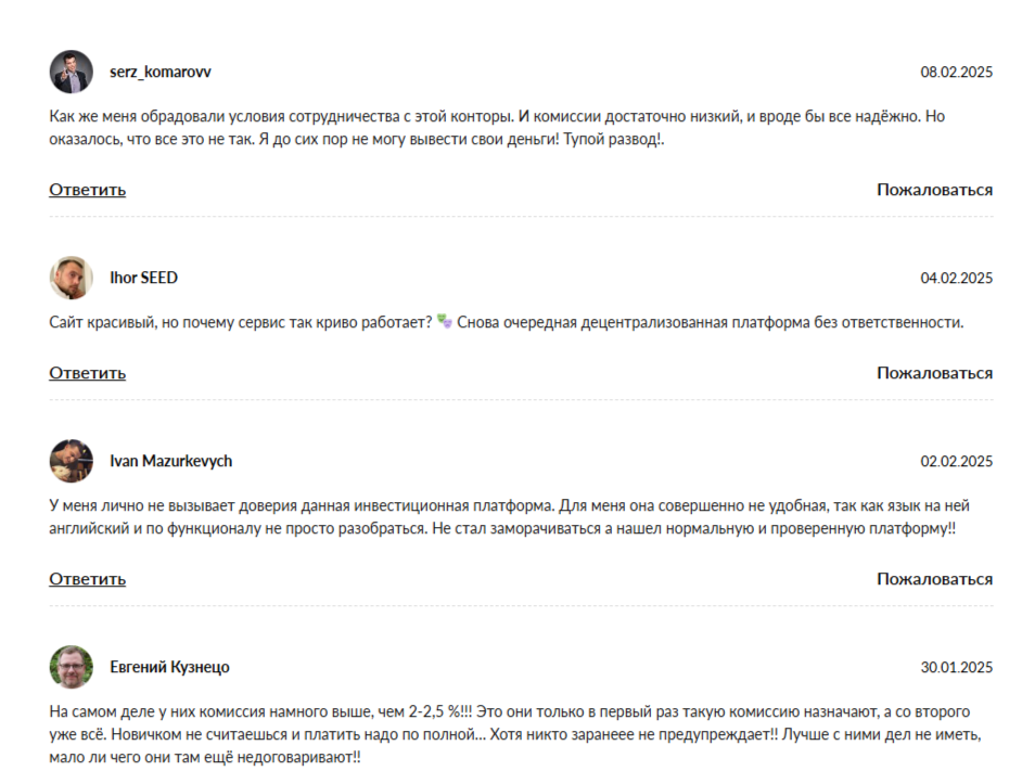 В процессе мониторинга интернета наша команда обнаружила скромное число негативных комментариев о проекте Streamiverse. В них пользователи пишут о присвоенных деньгах и высоких комиссионных сборах, а также рекомендуют не иметь дело с сомнительной площадкой.