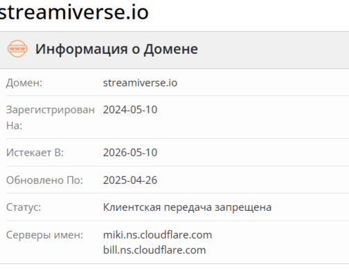 В процессе проверки инвестиционной платформы мы получили следующие результаты. Домен streamiverse io прошел регистрацию 10 мая 2024 года. Проект существует в интернете 1 год и 7+ месяцев. За достаточно приличное время существования структура, связанная с финансами, не легализовала собственную деятельность, не обеспечила клиентам необходимые гарантии.