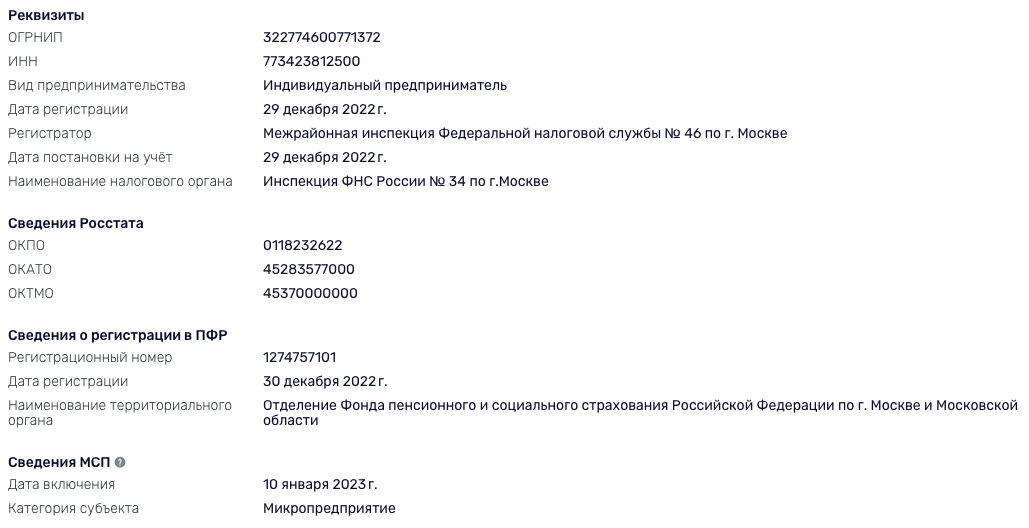Компания официально зарегистрирована. Она ведет деятельность от лица ИП Перфилов Андрей Владимирович. Данный предприниматель был зарегистрирован 29 декабря 2022-го года.