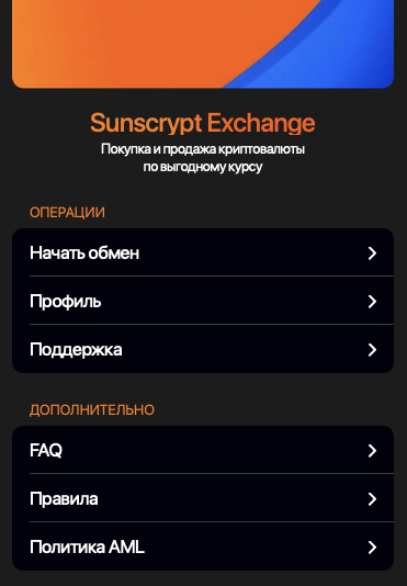 Описание обменника SunsCrypt Exchange