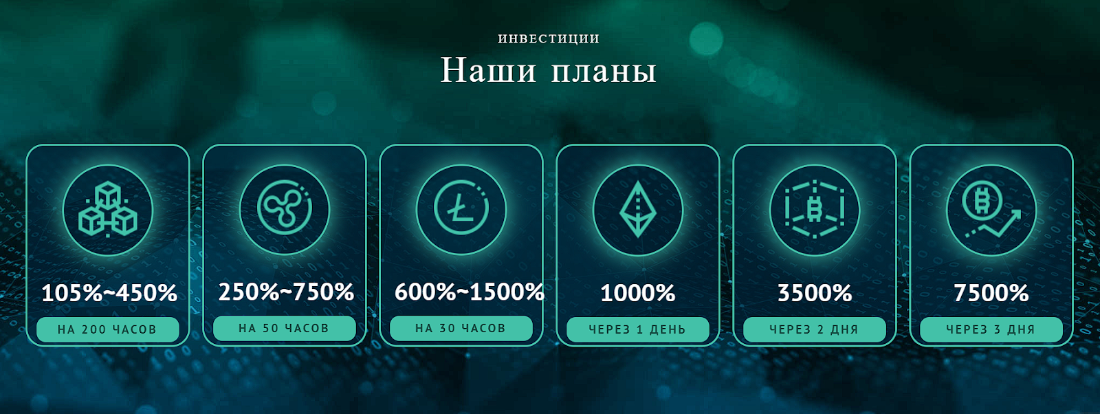 • #3 – депозит от 3 500 до 500 000 долларов, прибыль от 650 до 1500%, срок 30 часов.