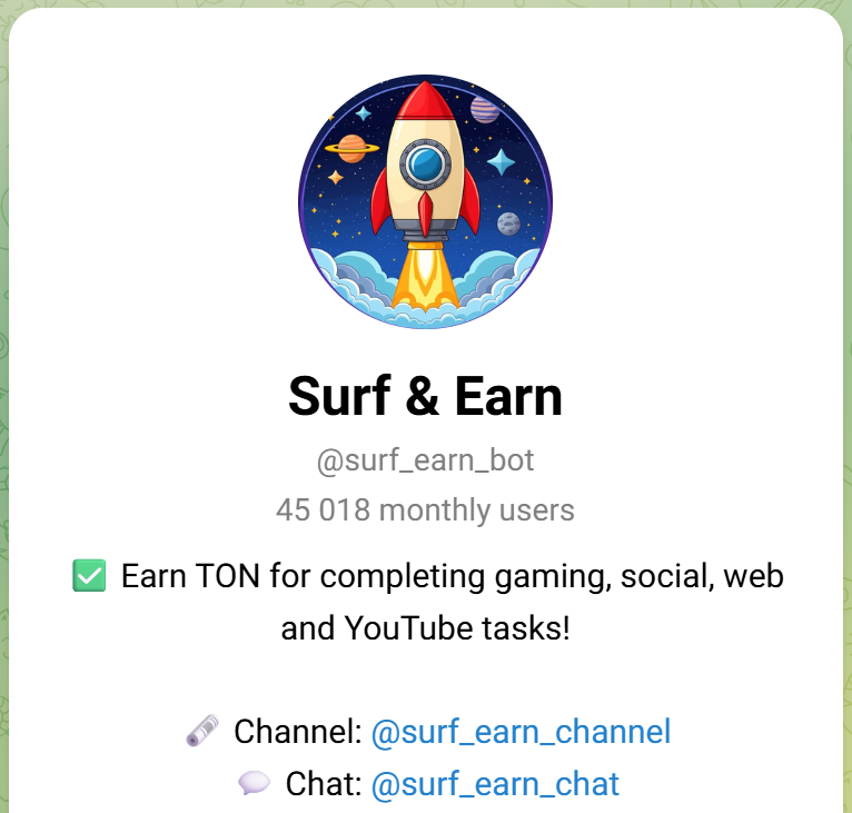 Обзор Телеграмм бота Surf Earn: отзывы юзеров, какие задания есть в приложении