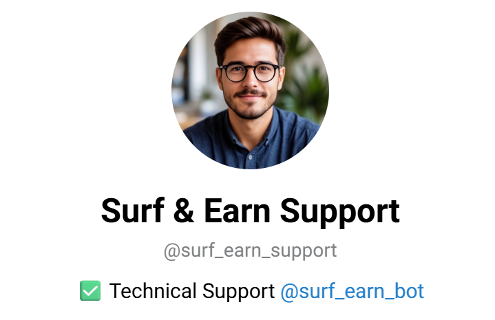 Техподдержка Серф Еарн работает через аккаунт @ surf earn support.