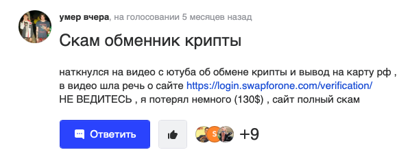 Ниже предлагаем обсудить представленную об обменнике информацию, а также поделиться личным опытом сотрудничества с Swapforone.