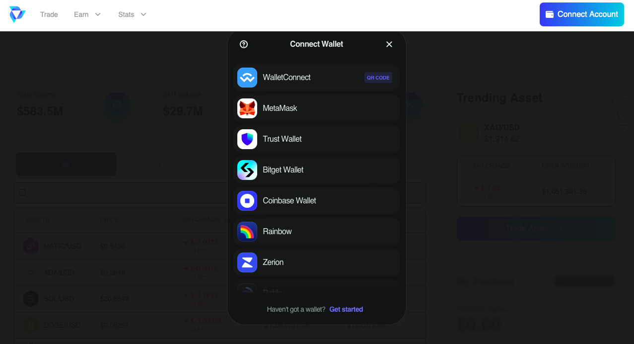 - для перехода к любой из функций (или вкладке) нужно привязать кошелек;