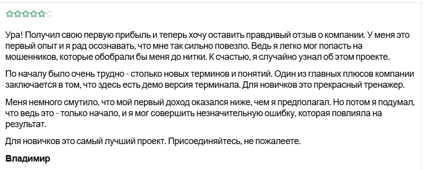 В открытых источниках удалось найти несколько отзывов о платформе. Пользователи хвалят проект за наличие демо-версии, но положительные отклики выглядят шаблонно и не содержат конкретных цифр.