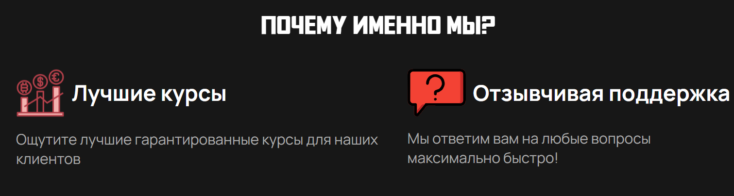 Чтобы обмен выглядел более выгодным, могут искусственно завышать курсы по отдельным направлениям. В итоге после появления негативных отзывов от тех, кто потеряет деньги, обменник закрывают, а вместо него запускают новый с сайтом на том же шаблоне.