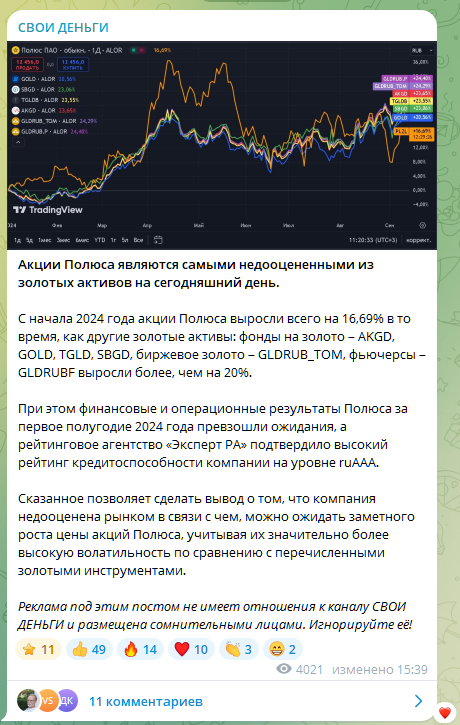Проект Свои Деньги можно найти на различных площадках. В основном, автор делится новостями и советами из открытых источников, какой-то эксклюзивной информации в источниках нет. Инвестор продвигает свои платные услуги, и, хотя их стоимость относительно низкая, мы не рекомендуем покупать эти продукты. Автор не вызывает доверия, потому что: