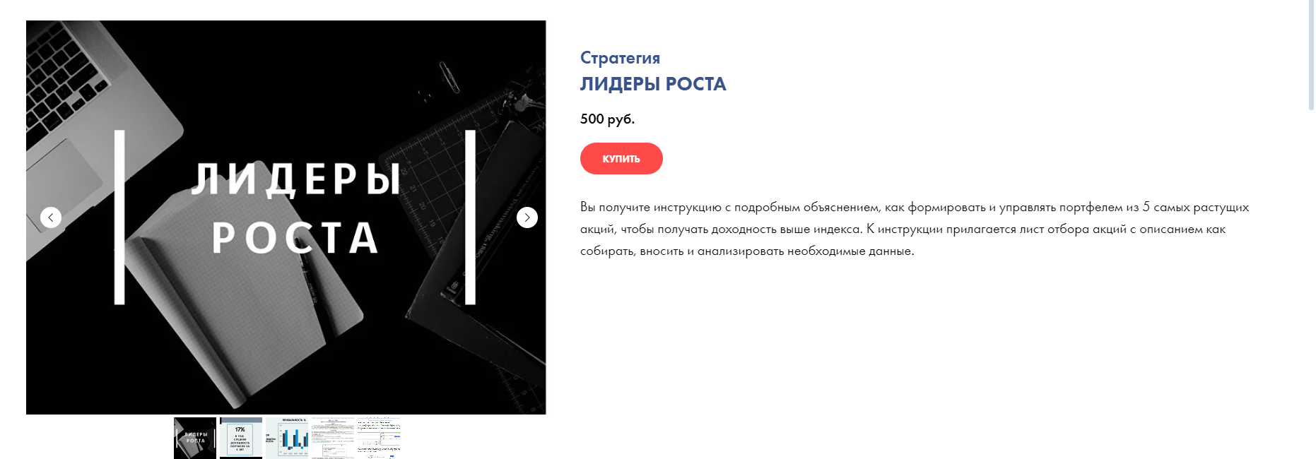 Расценки на услуги сравнительно небольшие. Так, например, стоимость стратегий составляет 500 рублей. Автор уверяет, что покупатель получит инструкцию, лист отбора акций.