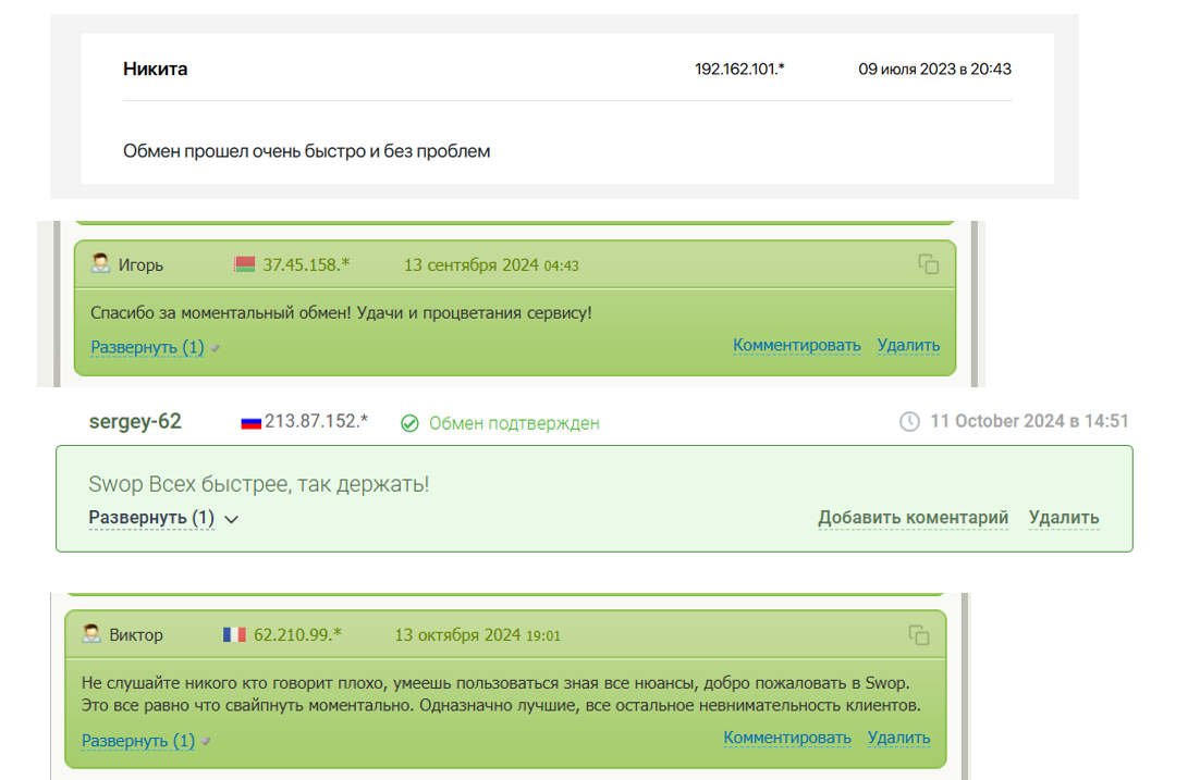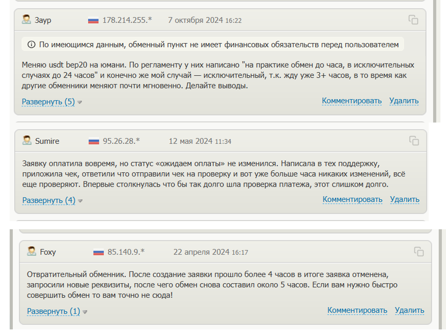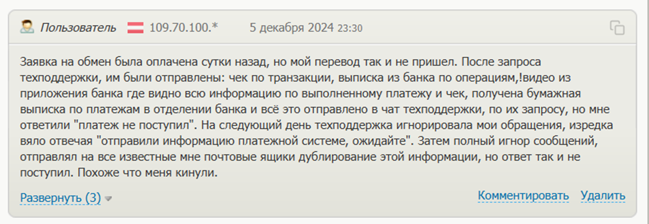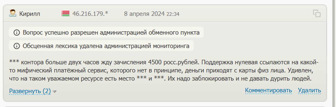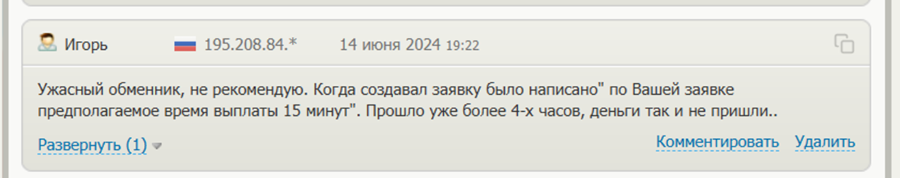 Конечно позитивные комментарии также встречаются, в том числе и на bestchange, но практически все они хвалят мифическую скорость обменника и не содержат деталей перевода.
