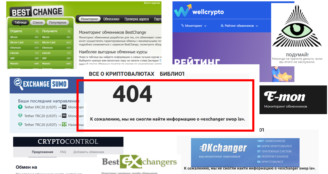 Анализ партнеров показал, что все ссылки, размещенные на сайте проекта просто ведут на главные страницы мониторинговых сервисов.Либо владельцы проекта своп обменник умышленно обманывают клиентов. Преднамеренно создают видимость доверия через якобы аффилированность с известными платформами. Либо виной недобросовестный маркетинг с некомпетентностью.
