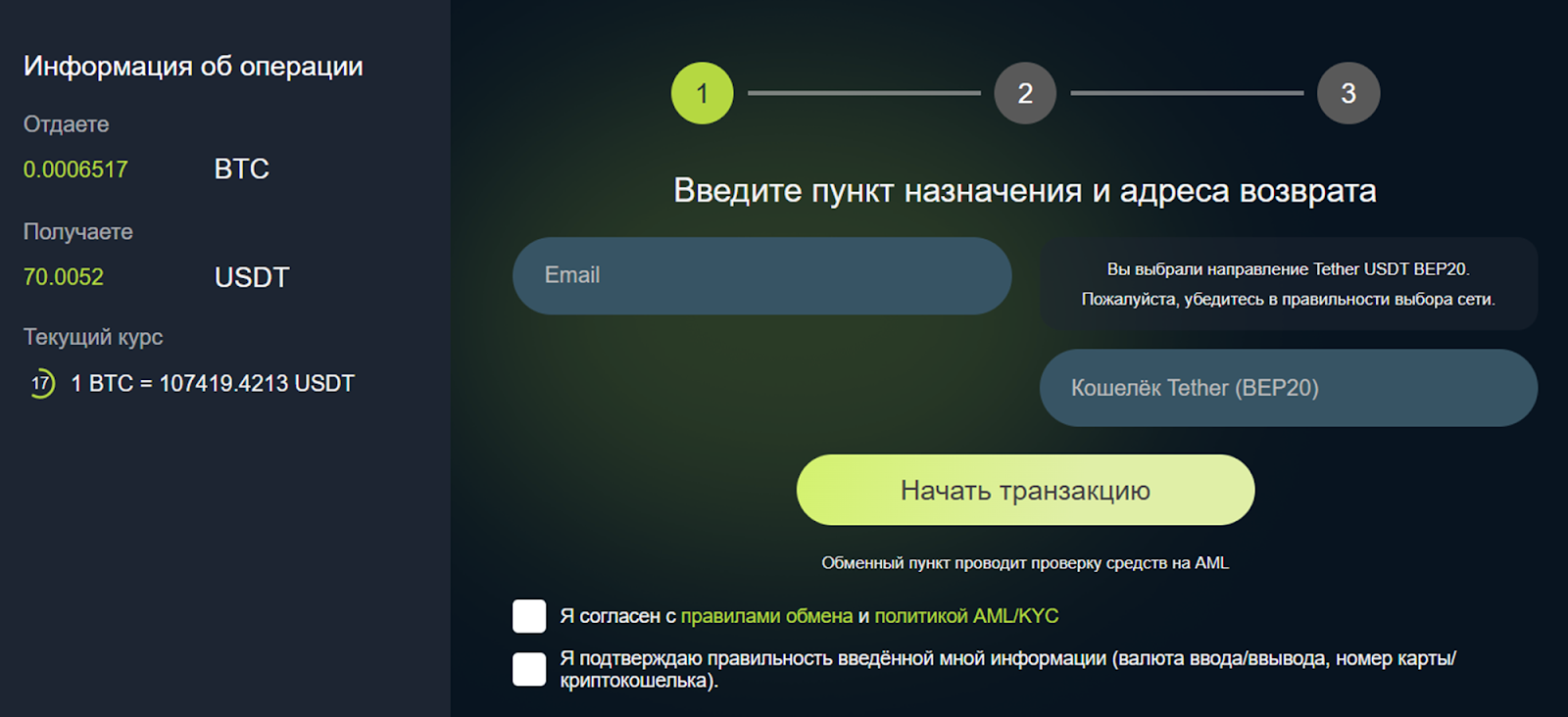 Анонимность — палка о двух концах. Никаких лицензий или упоминаний регуляторов. У серьезных обменников (например, бирж) обычно есть какие-либо признаки регуляторного соответствия. Здесь это отсутствует.