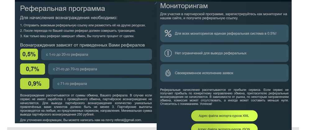 Для мониторингов фиксированный 0,5% с прибыли за каждого привлеченного клиента. Без ограничений на вывод, но выплаты только если сервис заработал.