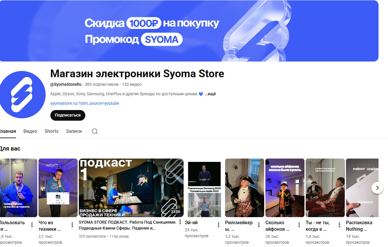 На Ютуб-канал магазина подписано только 385 пользователей. При этом видео могут набирать тысячи просмотров: