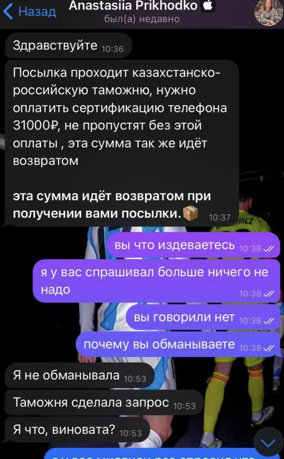 Человеку, который купил что-то в этом маркете, сообщали, что товар поступил на таможню, и та запросила оплату за сертификацию. Продавец обещал спустя время вернуть эту сумму покупателю.