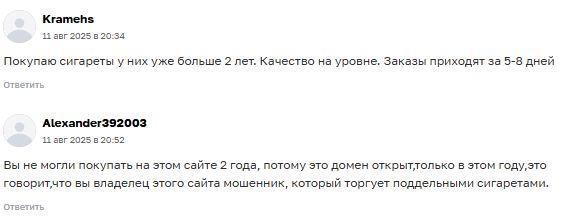 Даже когда проект работает честно, они все равно присылают поддельные сигареты. Да, цена ниже рыночной, но никак не сравнима с качеством. Даже бесплатно не стоит такое курить.