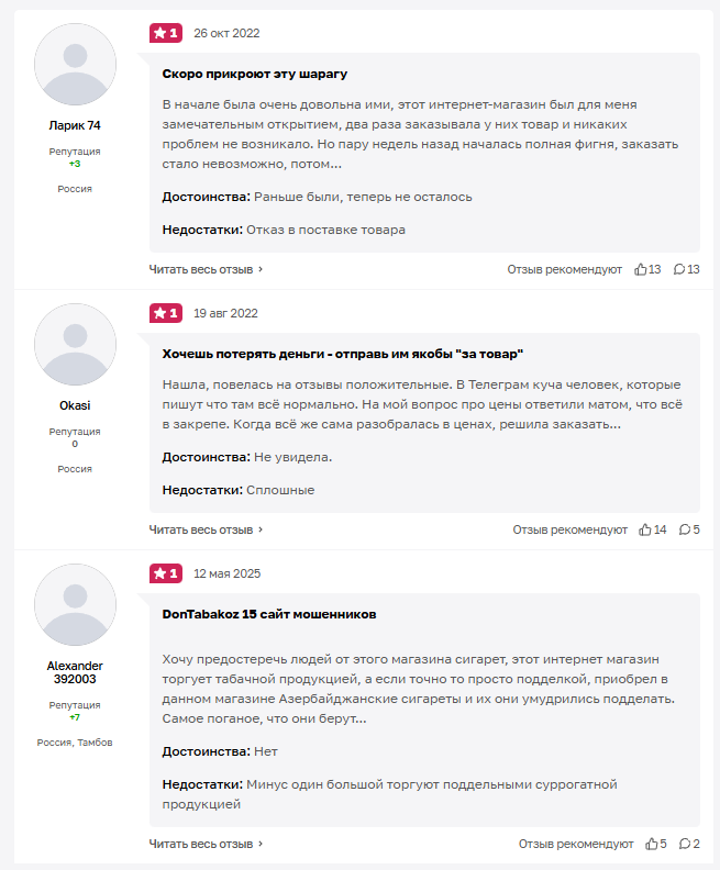 - очень много негативных отзывов о магазине Табакавоз в Телеграме;