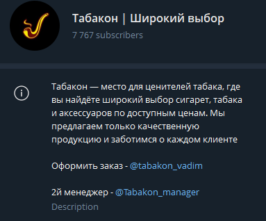 Табакон – сообщество/канал в Телеграм с акцентом на продажи табачных товаров и сопутствующих услуг, которое предлагает якобы широкий выбор в нише. При этом часть коммуникаций ведется в приватных чатах и каналах, где и проходят основные сделки. Далее разберем всю схему работы магазина Табакон в телеграмм и отзывы на просторах интернета.