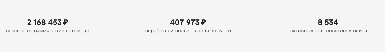 Содержание сайта тоже немаловажно, мошенники часто приписывают себе большое количество показателей и достижений, которые никак не связаны с ними. На TaskBank отлично прослеживается эта тенденция. Весь текст на платформе представляет собой одну большую маркетинговую уловку. Создатели очень навязчиво пытаются вам вручить эту “волшебную таблетку”, которая решит все ваши финансовые проблемы. Пользователям обещают “золотые горы” и для наглядности используют статистику. Например, сумма оплаты всех заказов здесь якобы составит более 2 млн. рублей – ниже мы проверим эту информацию.