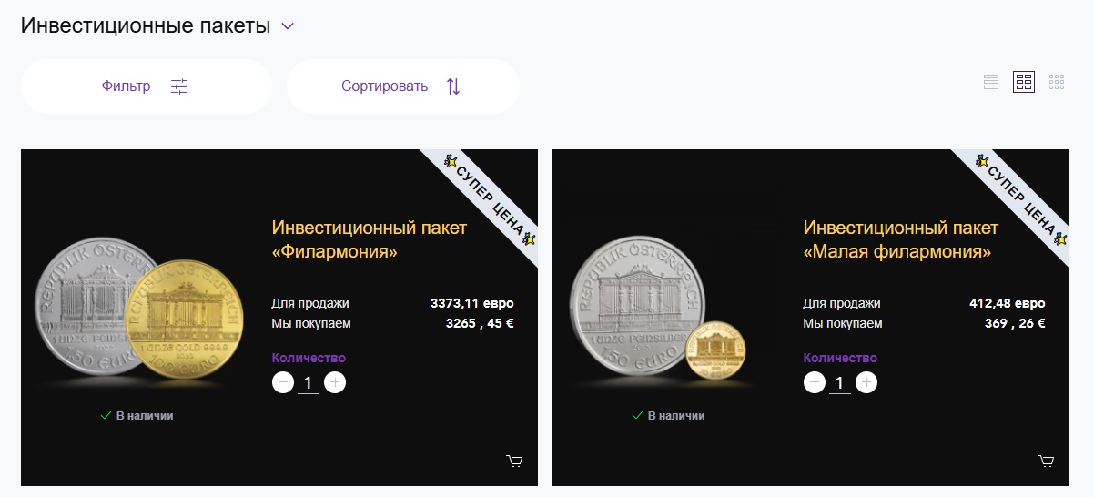 Компания позиционирует себя как площадку для инвестирования различные активы. В качестве основным торговых инструментов биржа использует драгоценные металлы, в том числе и коллекционные монеты.