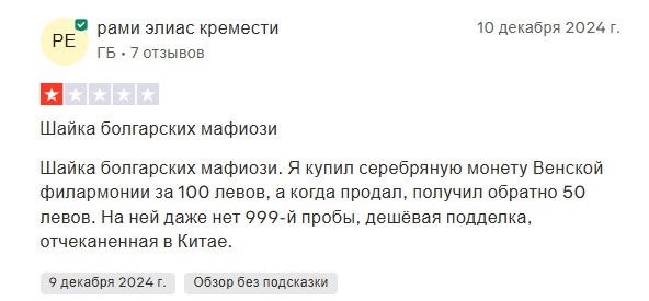 При изучении репутации платформ «Тавекс бг» и «Тавекс лв» стало известно, что большинство отзывов о них являются отрицательными. Один из таких гневных комментариев оставил клиент болгарского филиала. По его словам, вместо коллекционной монеты компания продала ему откровенную подделку, которая не стоит и гроша.