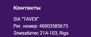 Известно лишь то, что организация зарегистрирована в Латвии под наименованием SIA TAVEX, а ее центральный офис расположен в Риге. Там же указан регистрационный номер юридического лица.