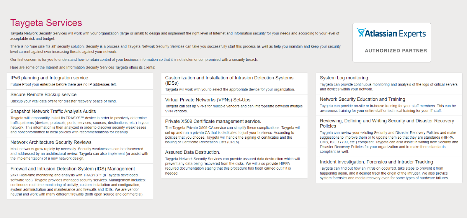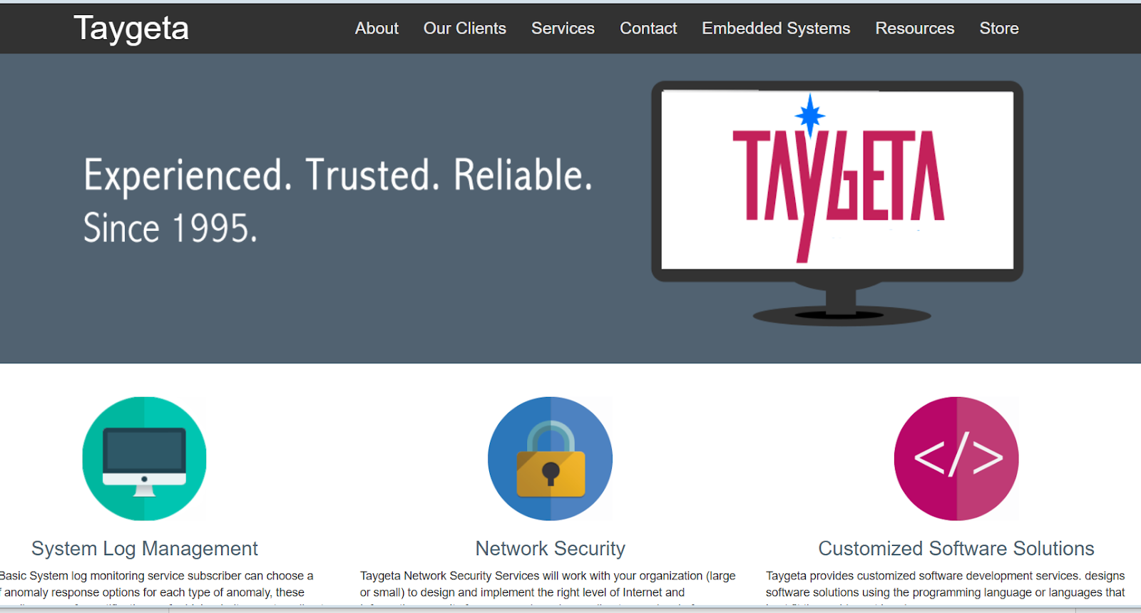 Taygeta Network Security Services — компания, где переплетаются легенды и факты, а на словах все выглядит основательно: это организация, которая занимается кибербезопасностью, с историей аж с 1995 г.
