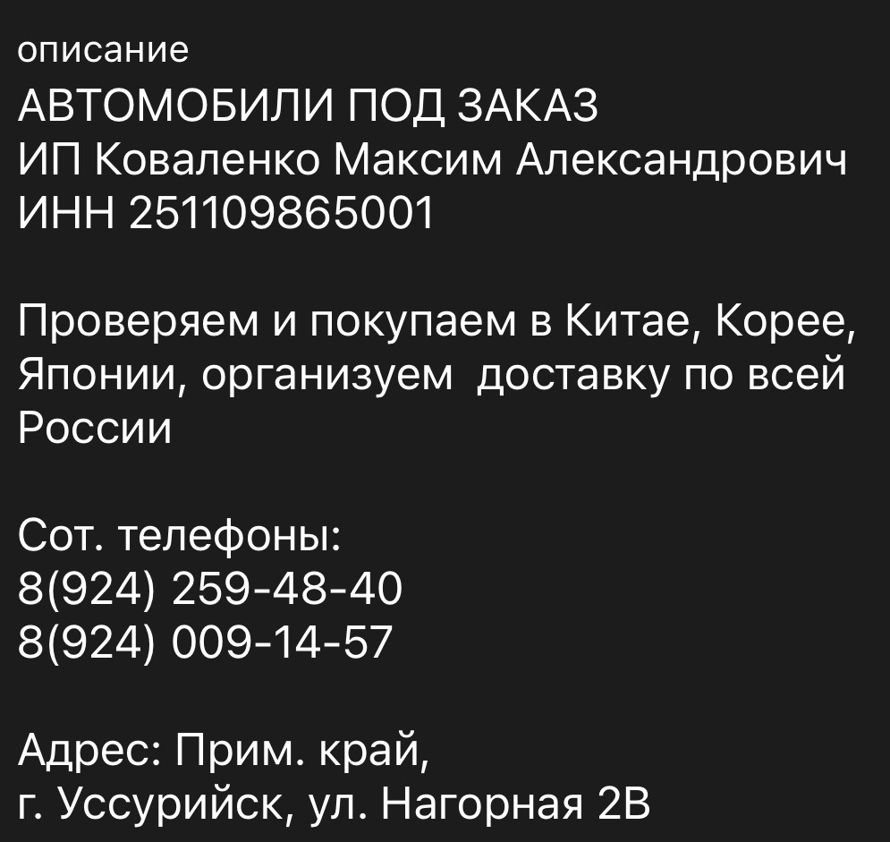 Лента забита объявлениями и редкими постами об изменениях в законодательстве, которые касаются сделок с транспортными средствами. Ни одного слова о том, как проходит сделка, включая условия оплаты и доставки, тут нет.Однако в описании сообщества мы наконец нашли юридические данные проекта. Оказалось, что деятельность контора ведет от имени Коваленко Максима Александровича, который зарегистрирован как индивидуальный предприниматель.
