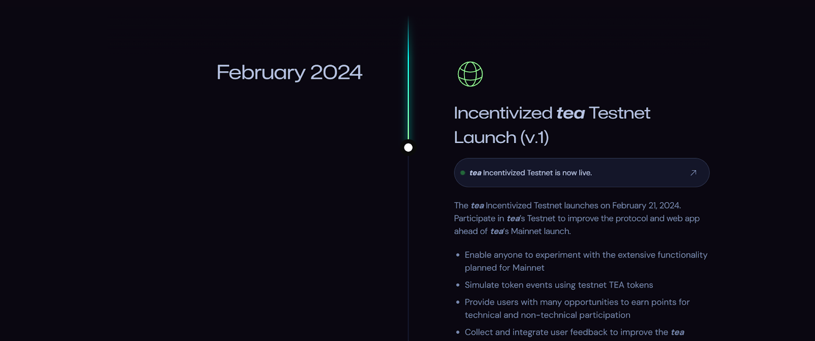 - февраль 2024 – запуск тестовой сети tea;