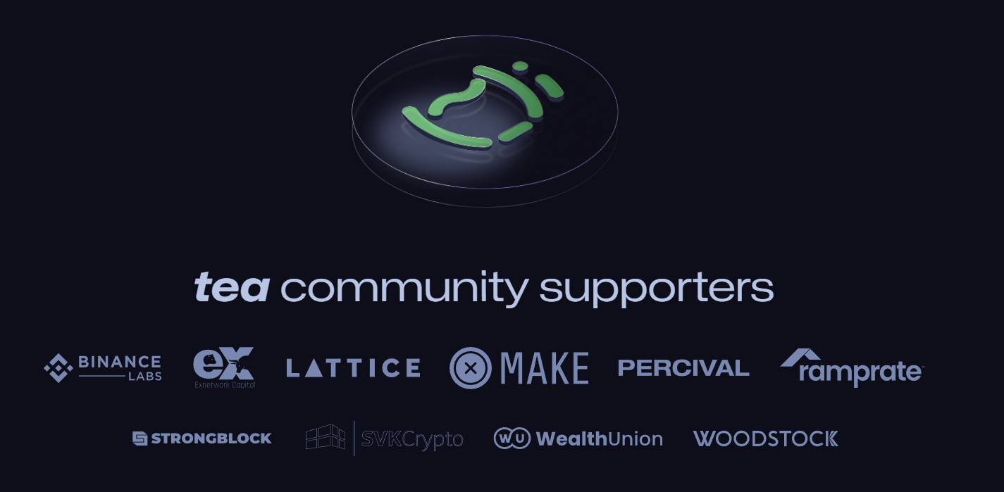 Среди спонсоров tea находятся такие платформы и компании как: Binance Labs, Exnetwork Capital, LATTICE, Xmake, PERCIVAL, ramprate, Strongblock, SVKCrypto, WealthUnion, WOODSTOCK.