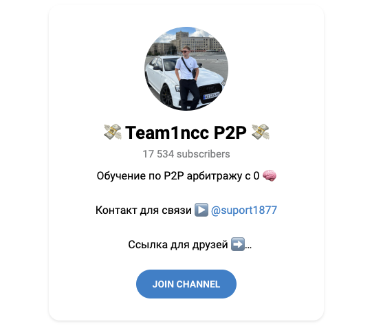 Team1ncc P2P — это канал в Телеграм, владелец которого представляет арбитражником. Он рассказывает, что ежедневно зарабатывает от 100 долларов.