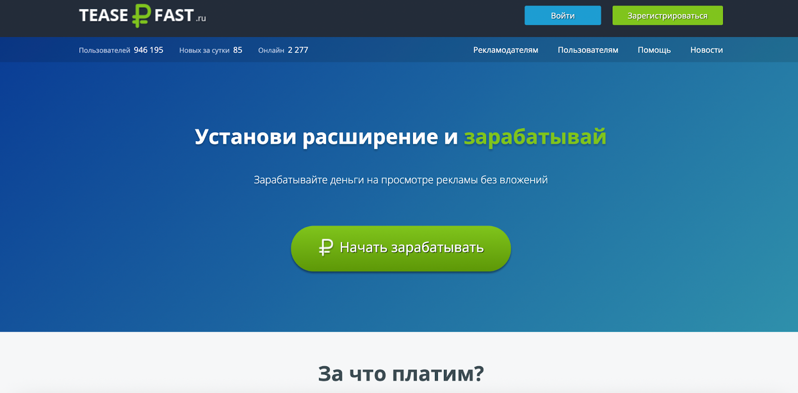 - TeaserFast предлагает заработок на просмотре рекламы через браузерное расширение, но уровень дохода по отзывам пользователей составляет лишь несколько десятков рублей в месяц, что делает платформу малопригодной для серьезного заработка;