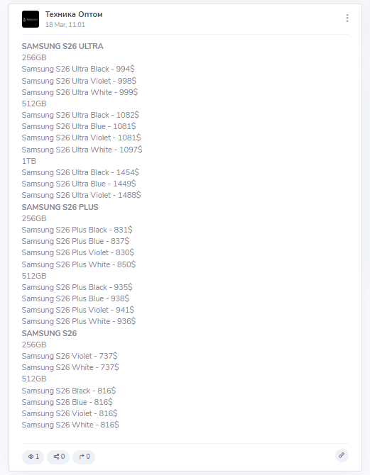 Цены на канале TechOpt практически не отличаются от рыночных и лишь немного дешевле, чем в официальных магазинах, что допустимо с учетом оптовых закупок. Однако нас смутил тот факт, что стоимость устройств указывалась с учетом доставки в течение 7-12 дней.